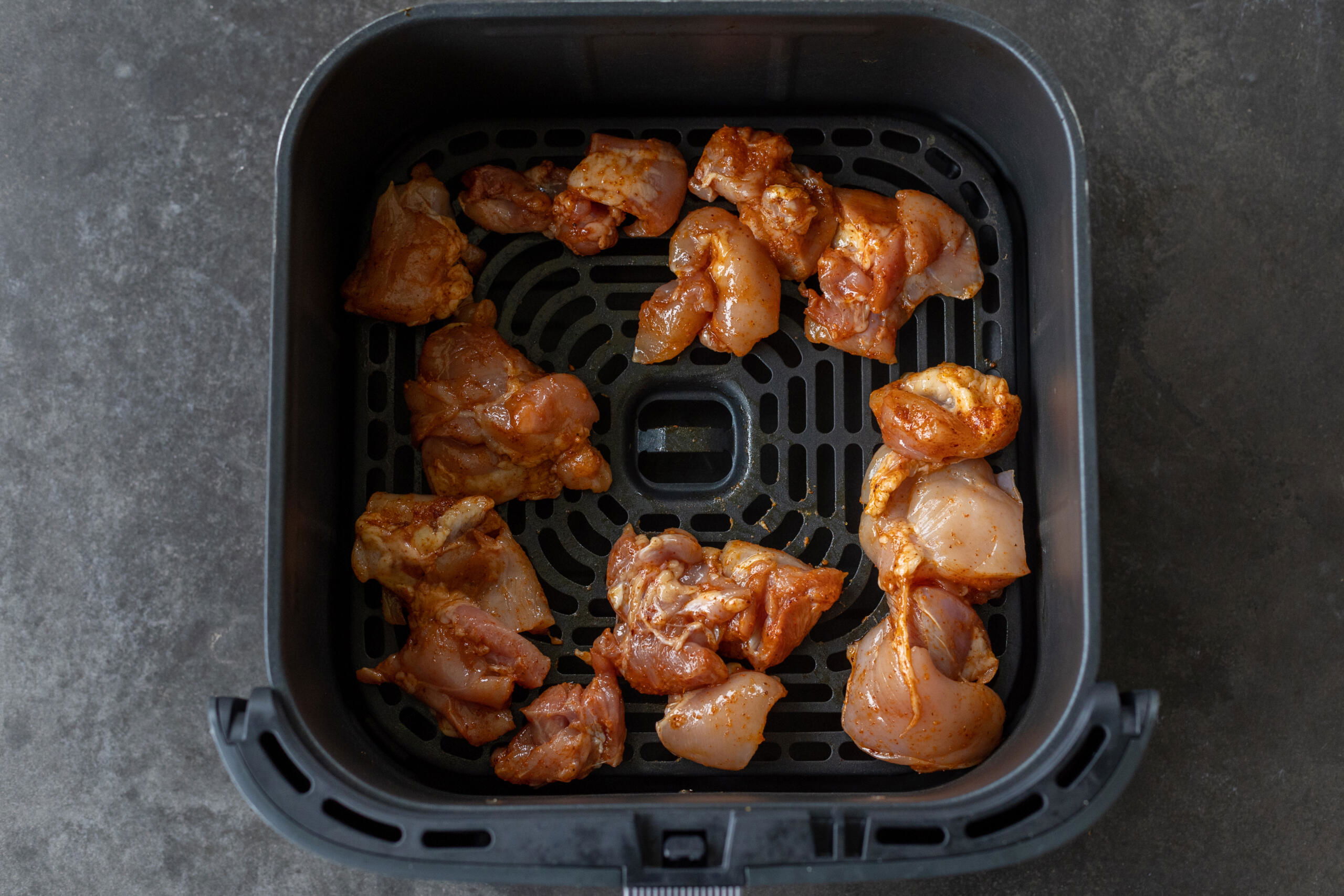 - Leave room between the chicken pieces. Air fryers work by circulating hot air around the food, so take care not to overcrowd the basket — you want the chicken to crisp up, not steam. Cook the chicken in batches if needed.