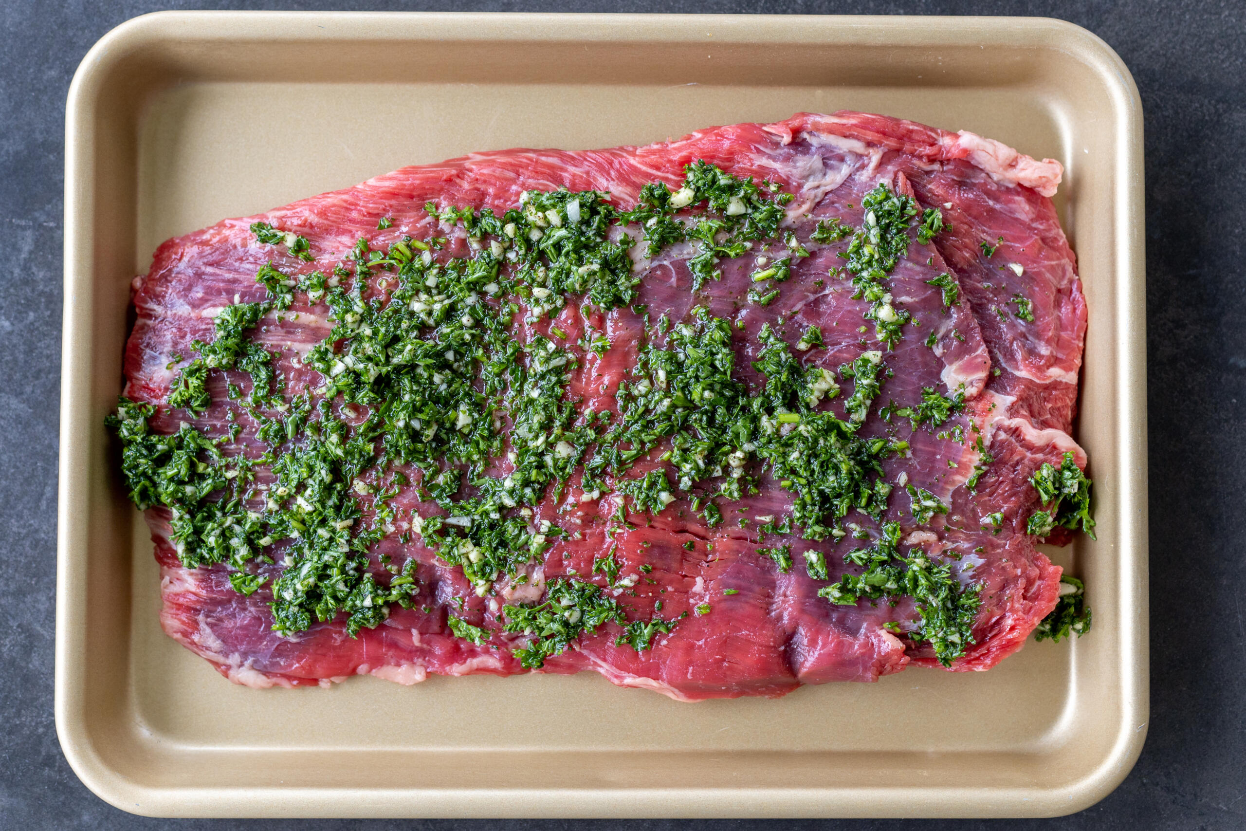 This chimichurri steak is marinated in a zesty and bold garlic-lemon-herb oil, then seared to perfection. It’s nearly effortless to throw together, and the whole family will love it!