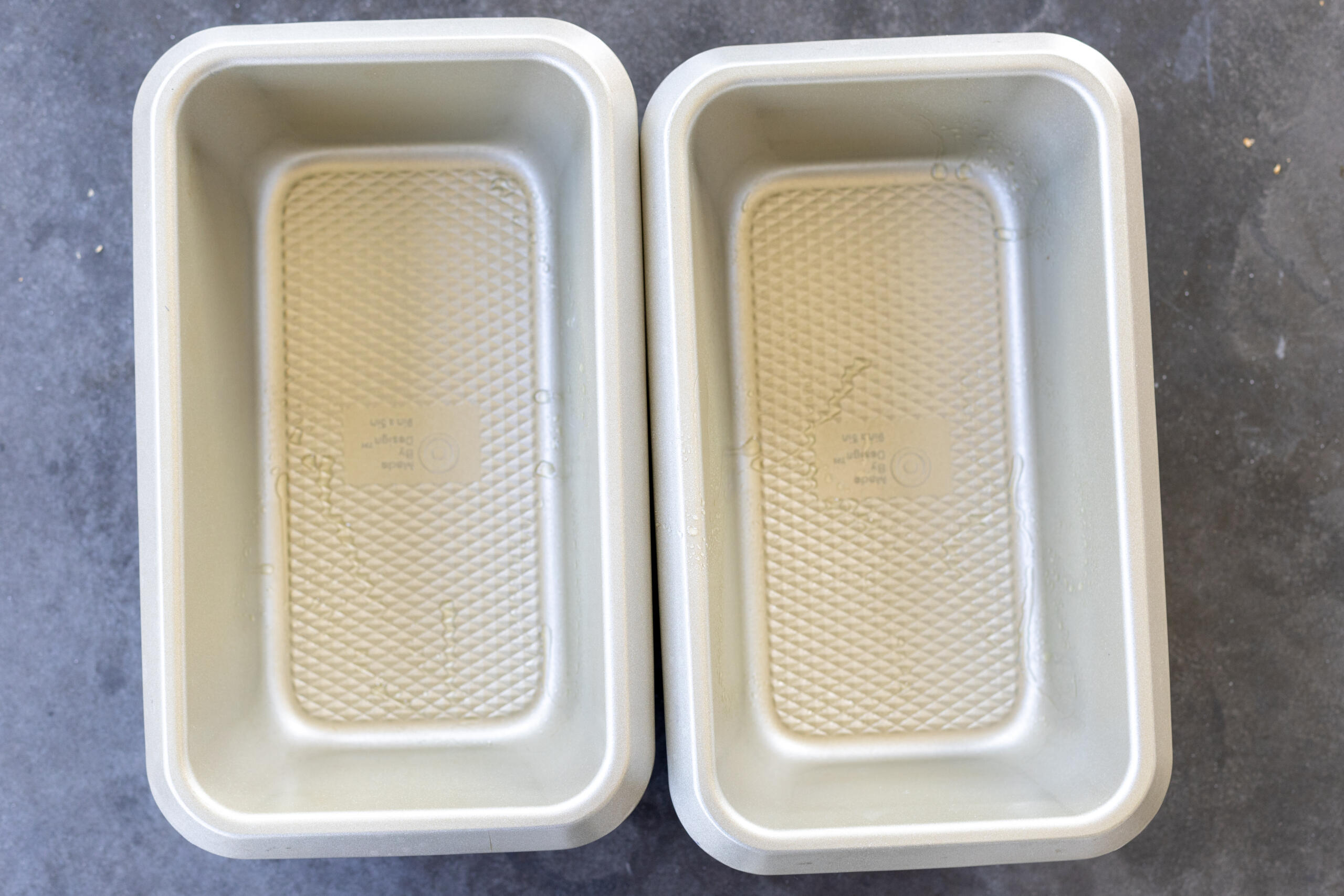 - Butter two 9-inch bread pans and line them with parchment paper.