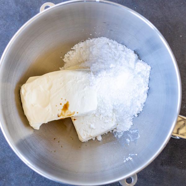 - Make the icing: In a large bowl, stir the cream cheese, vanilla extract, and powdered sugar together until smooth.